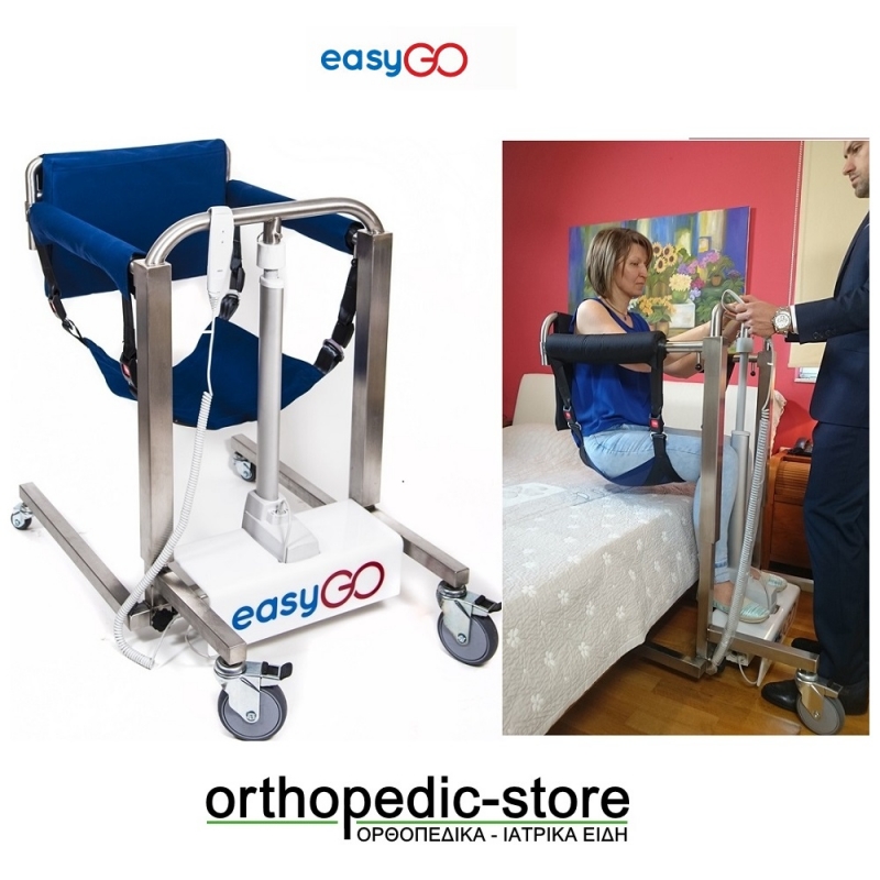Η easyGO είναι ο ευκολότερος και αξιοπρεπέστερος τρόπος ανασήκωσης, μεταφοράς και επανατοποθέτησης των ανθρώπων σας. Έρχεται να δώσει λύσεις στον ασθενή και το περιβάλλον του σε καθημερινές ανάγκες όπως η ανασήκωση, η μεταφορά στην τουαλέτα, η καθημερινή υγιεινή, η πρόσβαση στο αυτοκίνητο. Το έργο του ατόμου που φροντίζει τον ασθενή γίνεται άνετα, πιο εύκολα και με λιγότερο κόπο και δεν χρειάζεται πλέον να χρησιμοποιεί τη δύναμή του για να σηκώσει τον ασθενή.
