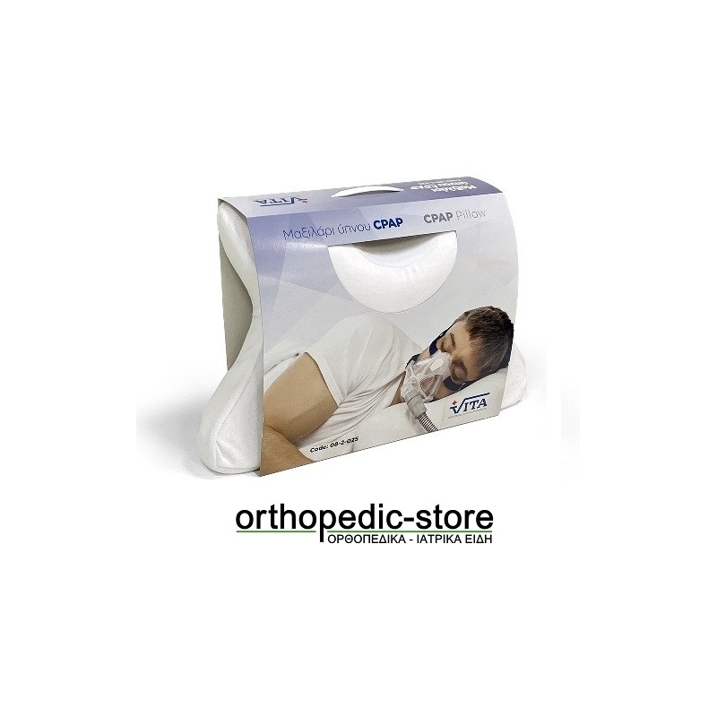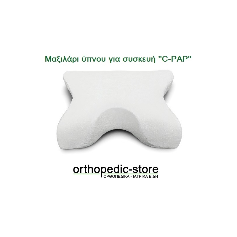 Μαξιλάρι ύπνου για συσκευή ''CPAP'' απο υλικό "MEMORY FOAM", ειδικά σχεδιασμένο για χρήση με συσκευή CPAP. Διαθέτει ιδιαίτερο σχήμα, ώστε η μάσκα και σωλήνας της συσκευής CPAP να μην βρίσκουν εμπόδιο ακόμα και σε πλάγια θέση.