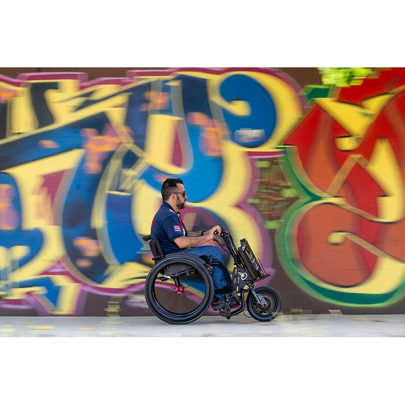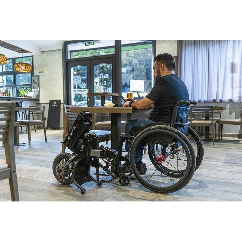 Το απλό αναδιπλούμενο σύστημα του το καθιστά εύκολο να το μεταφέρετε ή να το τοποθετήσετε σε μικρούς χώρους. Η επανάσταση στην κινητικότητα σου σε εξωτερικούς χώρους, χωρίς να χρειάζεται να παραιτηθείς από τα πλεονεκτήματα της χρήσης του αμαξιδίου σου!